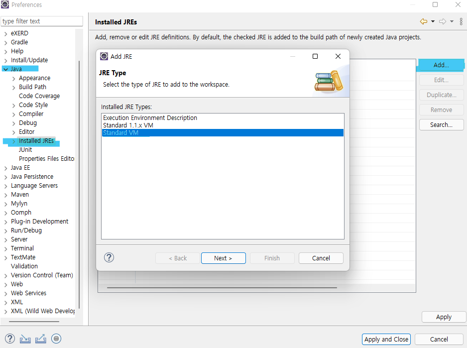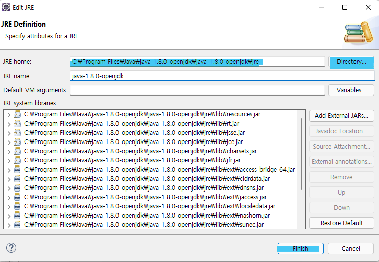 3. Directory > JDK가 존재하는 폴더 > JRE 폴더 클릭 > Finish 클릭